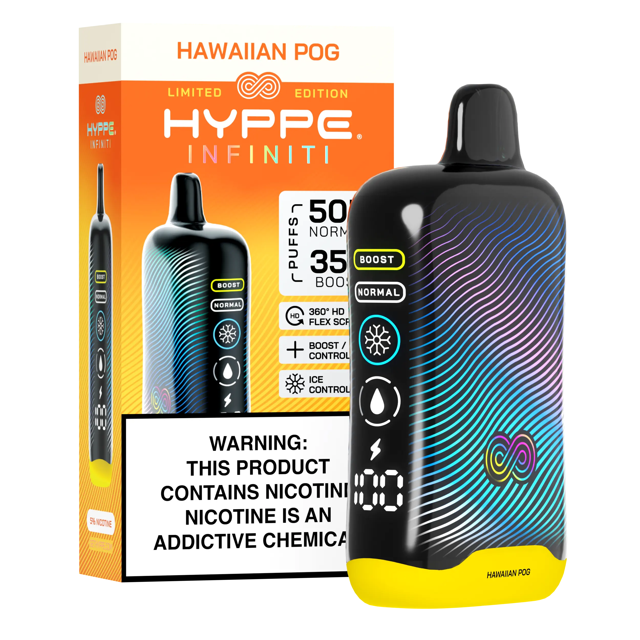 Flavor: The Hawaiian POG Hyppe Infiniti 50K delivers the legendary blend of Passion Fruit, zesty Orange, and smooth Guava. This lush tropical fruit punch is perfectly balanced, creating a vacation-in-a-vape experience that lasts for an incredible 50,000 puffs.