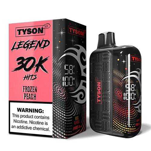 Flavor: The Frozen Peach Tyson 2.0 Legend 30K combines luscious, sun-ripened peach flavor with a decisive arctic chill. Experience the sweet and cool perfection of frozen peach in this 30,000 puff device, optimized by the triple mesh coil for incredible flavor consistency.