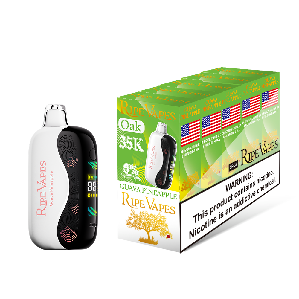 Flavor: The Guava Pineapple Ripe Vapes Oak 35K blends tropical guava smoothness with bright, juicy pineapple for a vibrant island-inspired vape. Providing up to 35,000 puffs with reliable, consistent performance, this rechargeable device delivers long-lasting flavor enjoyment. A sweet and refreshing tropical escape in every draw.