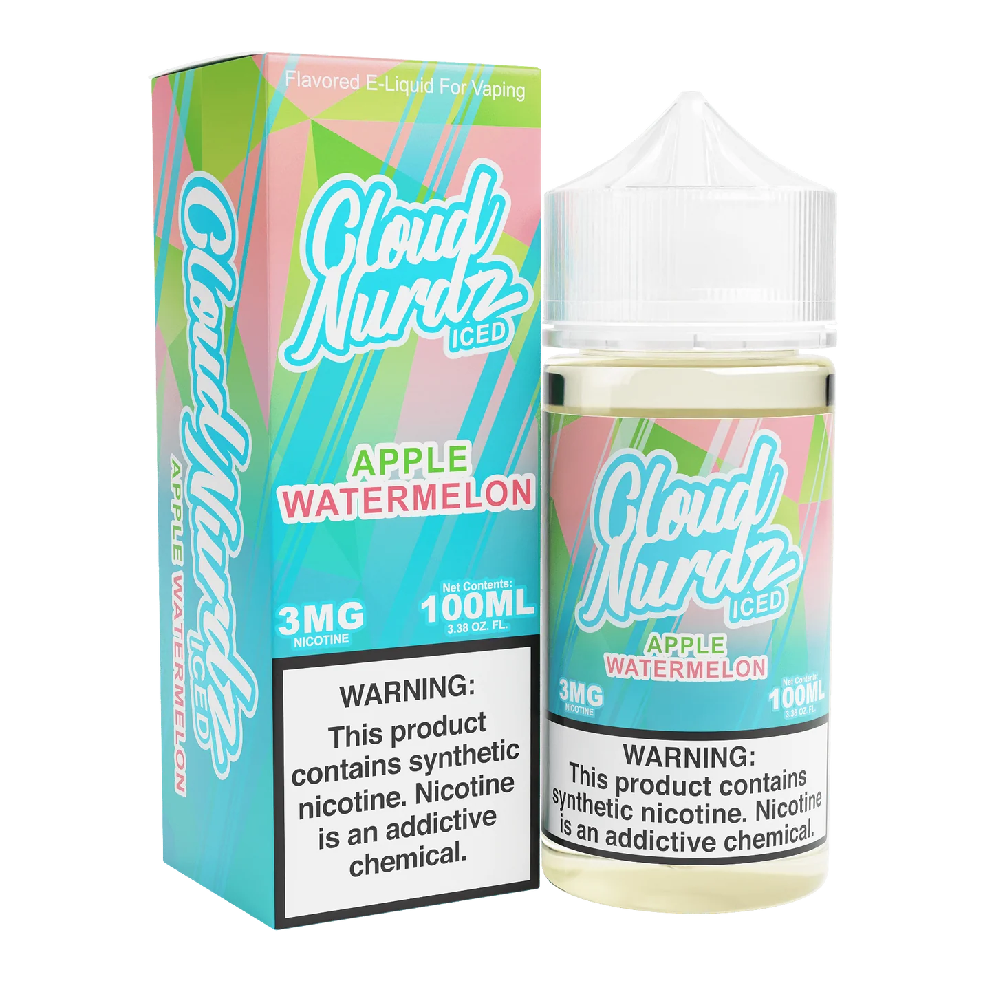Flavor: The Iced Apple Watermelon Cloud Nurdz 100ml delivers a crisp fusion of tart apple and juicy watermelon wrapped in a refreshing icy finish. This 100ml nicotine salt/formulated e-liquid offers smooth vapor production and a cool, fruity balance ideal for all-day vaping. A bright, chilled duo that keeps each inhale clean, sweet, and satisfying.